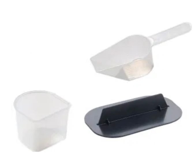 Set d’accessoires complet: pressoir + gobelet doseur + cuillere doseuse. Compatible seaux Bokashi Classique et Design.